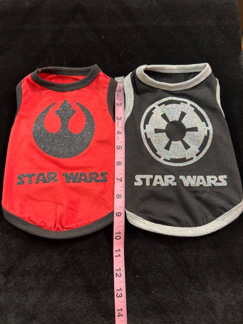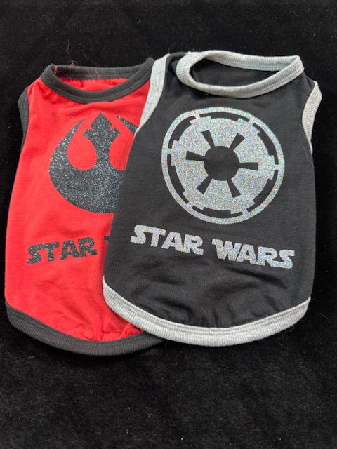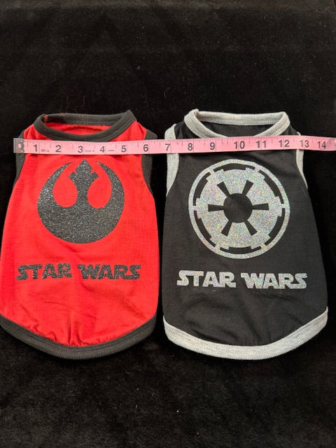 Your pup is ready to shine with these cosmic-inspired dog shirts! This small-sized duo features out-of-this-world galactic designs created with eye-catching heat transfer vinyl. The red shirt rocks black piping and a sparkly celestial pattern, while the black option sports grey piping and glittery galactic flair. Both designs are durable and designed to keep their shimmer through playtime and adventures. Perfect for dogs who love standing out from the pack with stellar style!