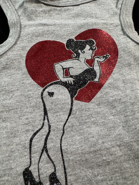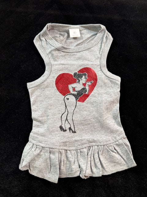 Your pup will turn heads in this adorable vintage-inspired dog dress! Crafted with shimmering glittery heat transfer vinyl, it captures that classic pin-up girl aesthetic in a fun, fashion-forward way. Perfect for small dogs, this size large dress offers a comfortable fit that lets your furry friend strut their stuff. Whether you're heading to a party, photoshoot, or just want to add some sparkle to everyday adventures, this glittery gem is sure to get tail wags and compliments wherever you go.