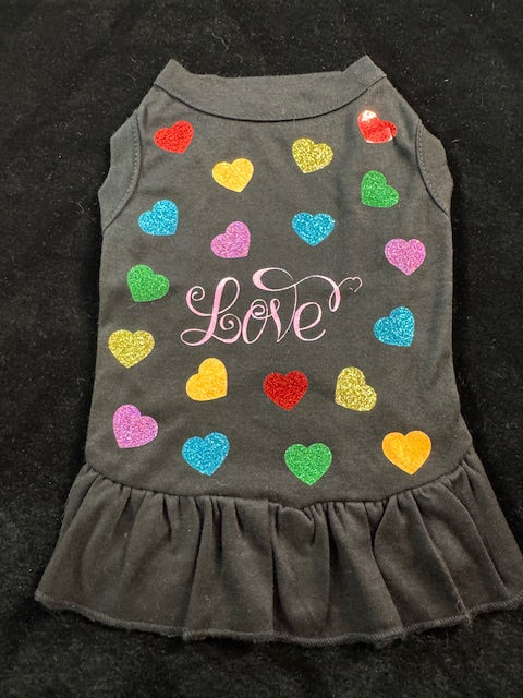 Dress your pup in style with our Rainbow Dog Dresses in Medium! Choose from three fabulous designs: a little black dress adorned with glittery hearts in a rainbow of colors, a pink dress featuring a shimmering diamond and "Material Girl" text, or a blue dress with "Cat Lover" in rose gold—perfect for the feline-obsessed pooch. Each design is crafted with premium heat transfer vinyl for durability and sparkle. Your furry fashionista will turn heads on every walk! Colors will vary due to lighting. Any questions just ask ;)