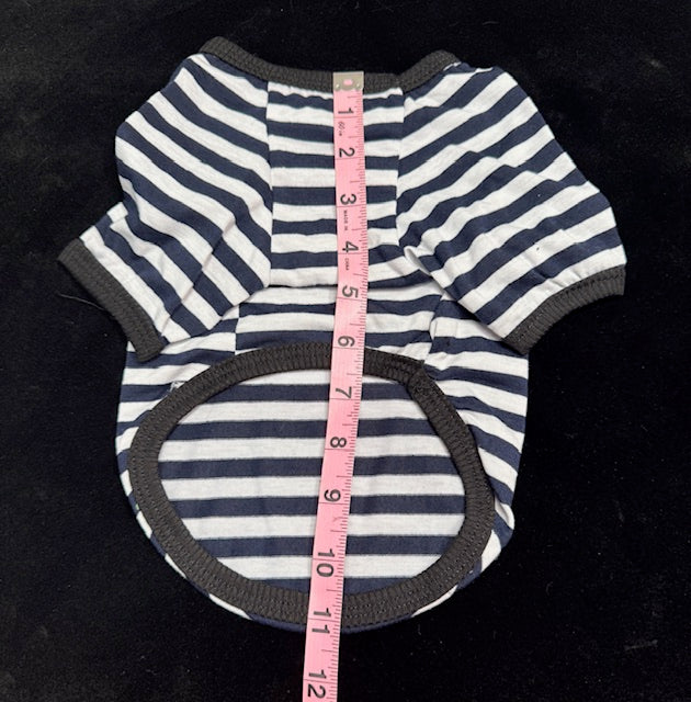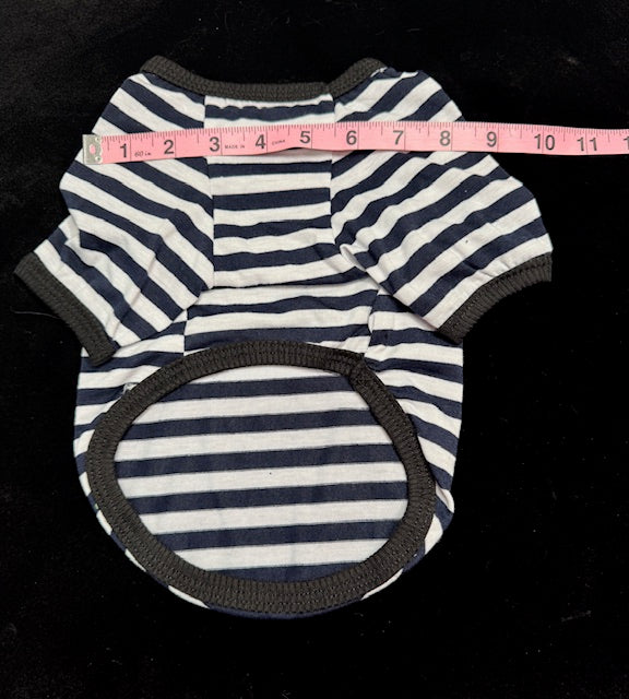 Your pup will be the most festive friend on the block in this adorable Santa-themed dog shirt! Featuring a cute white base with navy stripes and black piping, it's topped with a glittery DTF design of Santa cruising in a black bug convertible—because even jolly old St. Nick needs a stylish ride. The generously wide neckline ensures a comfortable fit for dogs with bigger necks. Perfect for holiday photos, festive outings, or just spreading Christmas cheer all season long.