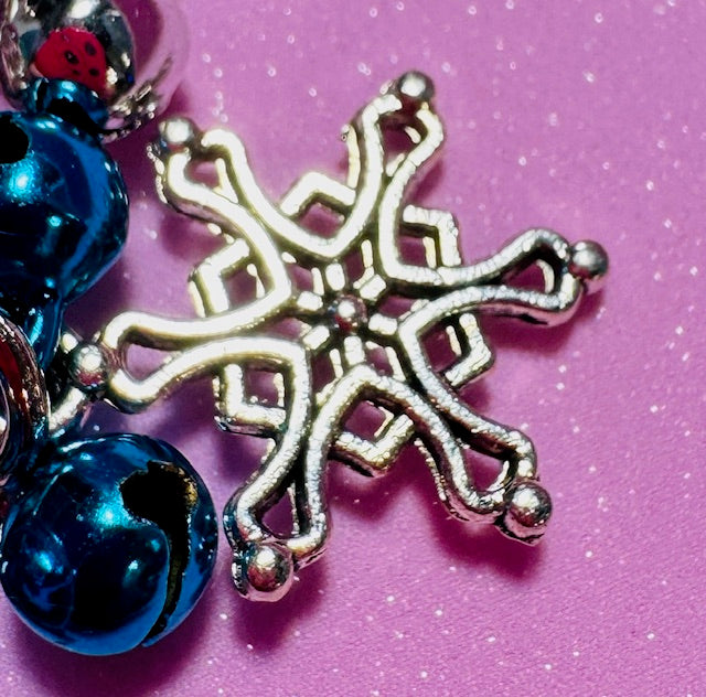 Spread holiday cheer wherever you go with this delightful Snowman Keychain! Featuring a charming metal snowman stamped with "Joy," a sparkly snowflake accent, and jingling silver and deep blue bells that celebrate the season. The sturdy lobster claw clasp with swivel keeps your keys secure and tangle-free. At 2.5 inches, it's the perfect festive companion for your keyring or bag. Let the merriment follow you all winter long!