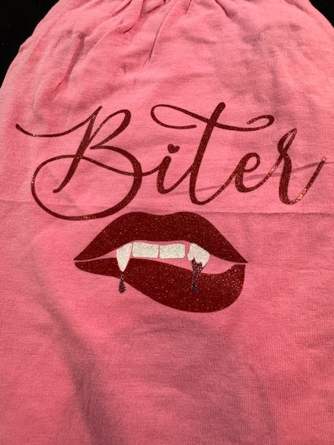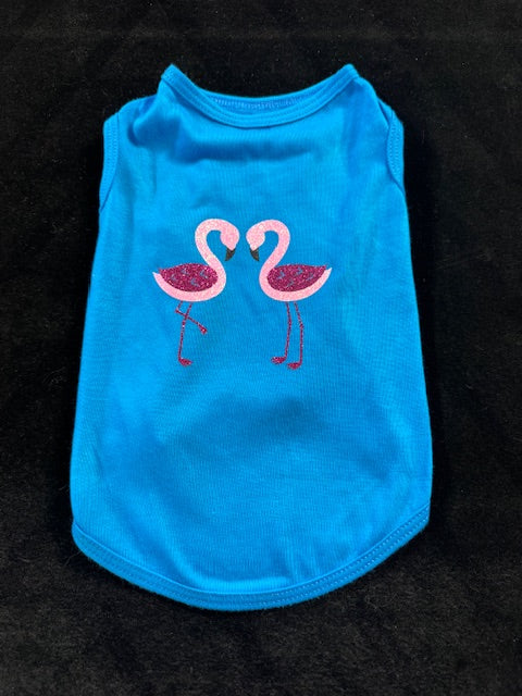 Unleash your pup's personality with this fun variety pack featuring three medium dog shirts, each with its own vibe! Rock a pink shirt adorned with glittery vampire lips for spooky-chic style, slip on the blue tee featuring fabulous pink flamingos in shimmering vinyl, or go retro-cool with the grey shirt showcasing Joe Cool in eye-catching glitter. Each design is crafted with premium heat transfer vinyl that's built to last through playtime and cuddles. Perfect for rotating looks throughout the week or mixing and matching with your furry friend's wardrobe. Because when it comes to doggy fashion, variety truly is the spice of life!